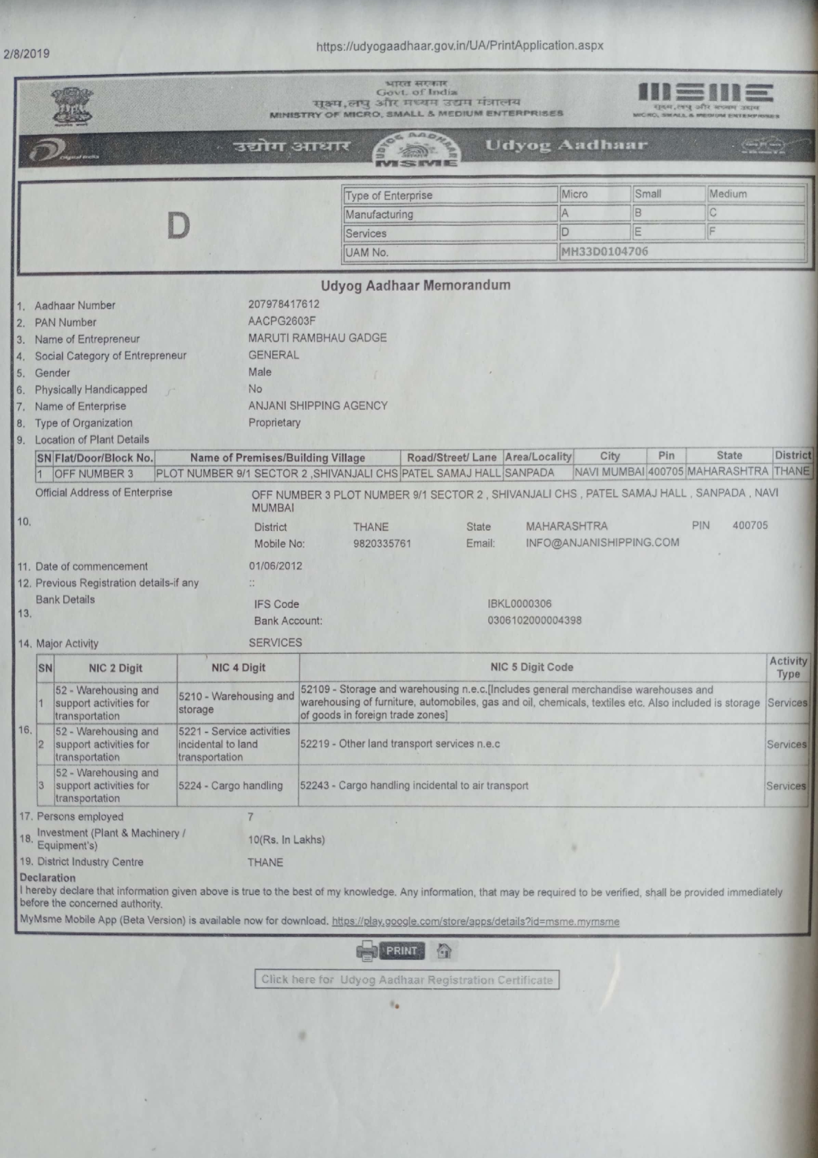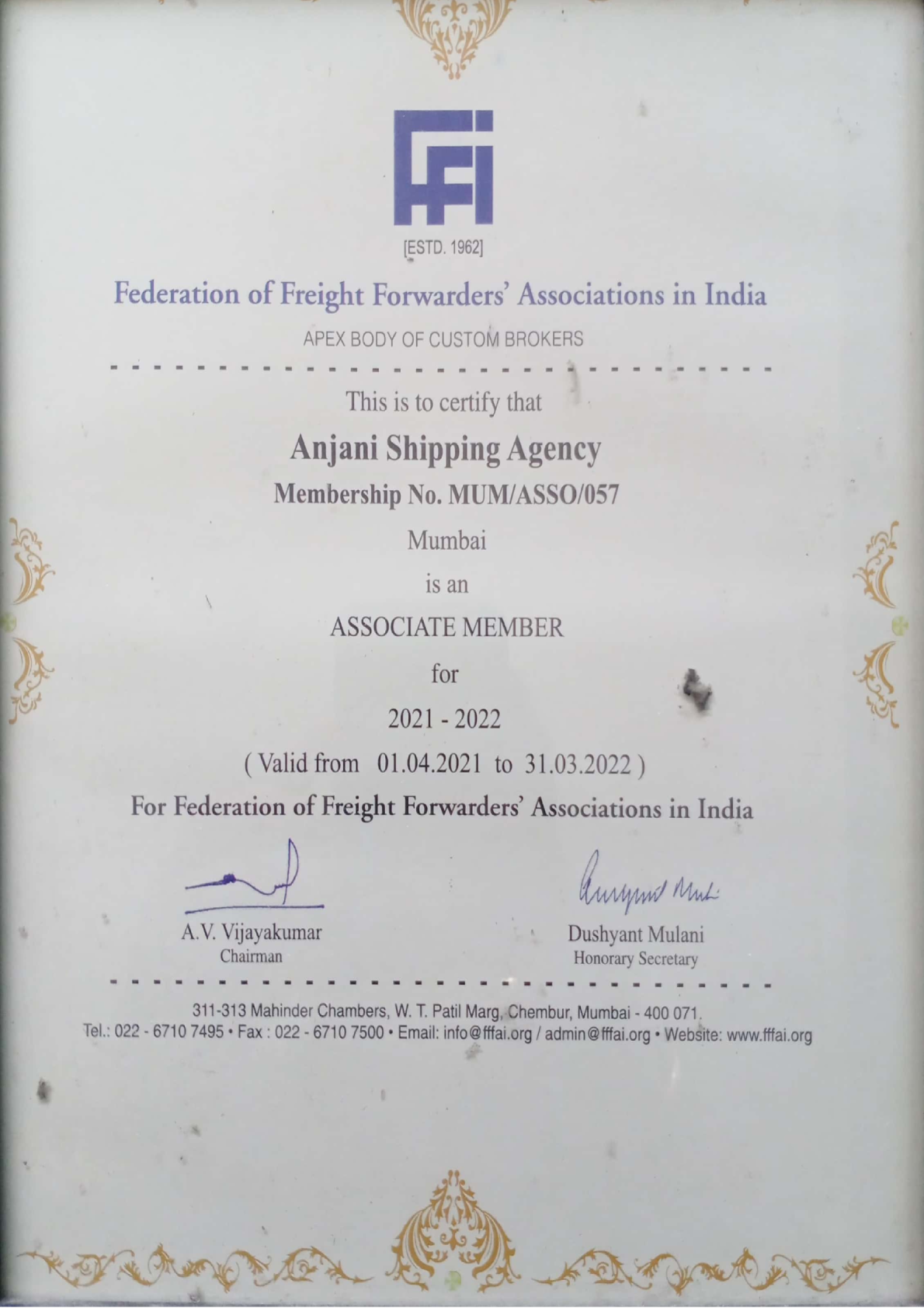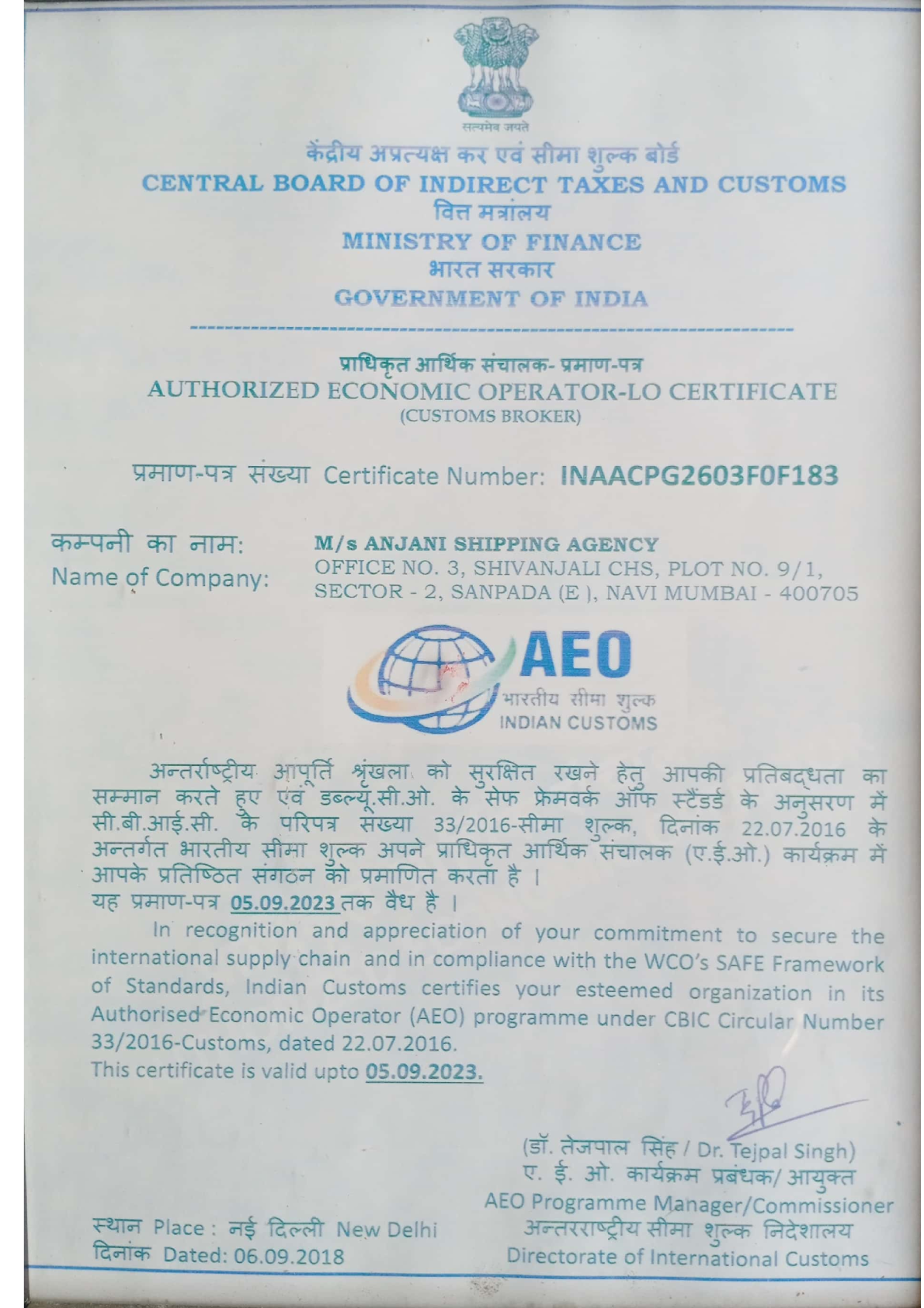 We are a Licensed Customs Broker ANJANI SHIPPING AGENCY CB : 11/1665 In Custom Clearance Filed since last Three decades.